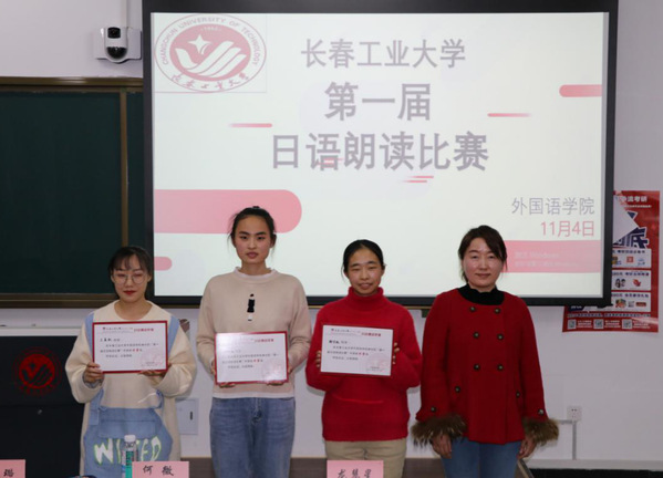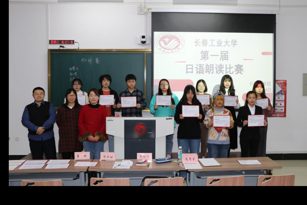 此次朗读比赛题目为《いただきます》《< 何もございません>の日本文化》《外国語を学ぶコツ》《何より健康》《聞耳頭巾》。选手可以任选一篇文章朗读并按照抽签顺序依次进行比赛。在朗读环节中,选手们语音语调标准、吐字清晰、表达流利,尽情地展示自我风采。最终,经过激烈的角逐,王孟秋、韩宇航、刘叶萌3名同学荣获特等奖,宋晶、斯日格、金尹美、王政、祝佳妮5名同学荣获一等奖,张悦等10名同学荣获二等奖,王毓琪等18名同学荣获三等奖。