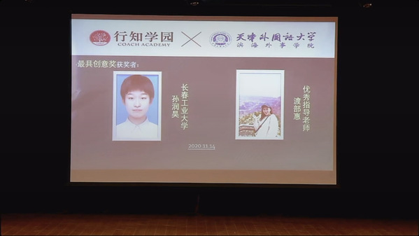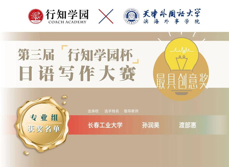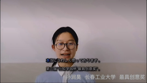 11月14日晚7点,第三届“行知学园杯”日语写作大赛线上颁奖典礼在天津隆重举办。我院荣获“最具创意奖”的孙润昊同学在颁奖典礼上发表了获奖感言。