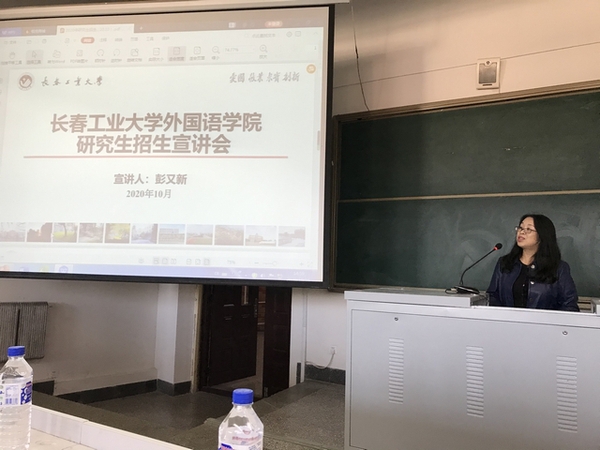 院长彭又新为在场同学深入浅出地分析了考研的意义,介绍了我院外国语言文学一级学科硕士点的建设情况、四个学科方向的发展现状、招生计划及研究生的奖助学金体系等,鼓励同学们积极报考研究生,提升自我、实现理想。