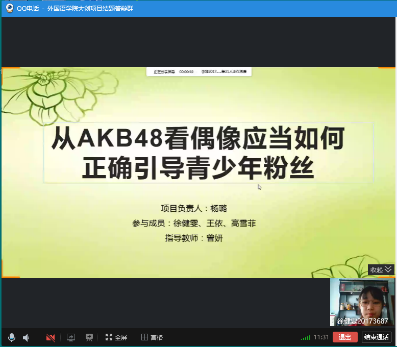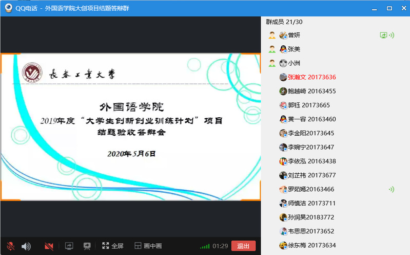 (通讯员:张美)5月6日星期三下午13:00-17:00,Beat365中文官方网站利用QQ网络平台进行了2019年度“大学生创新创业训练计划”项目结题线上验收评审工作。英语系主任刘宇、日语系主任曾妍、俄语系主任张美担任此次结题验收答辩的专家评委。学院副院长周爽全程参加评审验收。
