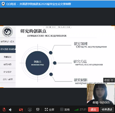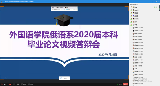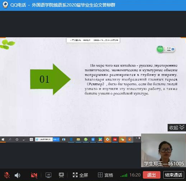 答辩人按要求一一展示自己的PPT并回答答辩评委的论文研究相关问题,6位答辩人以研究问题的深度、俄语语言的表达叙述能力、论文结构的缜密性创新性等完成论文写作,出色地展示了学院2020届俄语系学生综合水平。