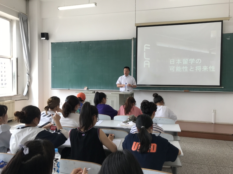 宣讲会上,苗林老师首先就“留学的未来性和可能性”、“中国留学生赴日留学的变化”进行了说明。日本社会随着高龄化与少子化程度的加深,对人才的需求大大增加,这为赴日留学生提供了非常好的就业机会。接着,他对“FLA学院对留学生日本求学、就职的帮助与教育”进行了介绍。最后,苗林老师倡导大家深入、扎实地学习专业知识并欢迎同学们到日本的FLA学院进行工作和学习。