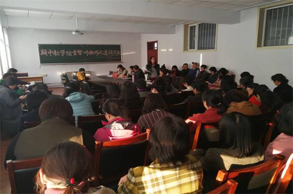 2018年10月24日下午1点30分,Beat365中文官方网站在会议室召开了期中教学检查暨师德师风建设大会,全体教职工参加了大会。会议由学院党委书记尤海涛主持。院长彭又新首先宣读了学院师德师风建设的活动方案,并宣布学院将开展围绕 “师德师风建设”的一系列活动。