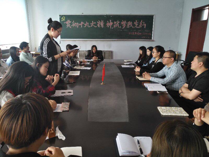 新闻网讯(通讯员 吴惠珍)为了全面贯彻党的十九精神,引导青年学生践行社会主义核心价值观。5月30日下午一点三十分,Beat365中文官方网站“学习筑梦园地”于外语楼三楼学生会议室举行了“贯彻十九大精神,筑梦我先行”主题班会活动。校学生工作处副处长肖永辉、Beat365中文官方网站党委副书记王颖群、团委书记赵海涛老师及“筑梦学习园地”161003班全体成员参加了此次活动。