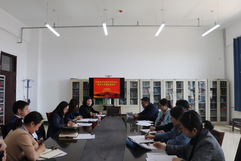 党委副书记王颖群通报了我院2021届各专业毕业生的考研、出国、就业等情况,就目前就业工作存在的问题进行了分析,明确了目前的就业形势以及具体的工作计划,提出了具体要求。各系主任、书记分别汇报了本单位抓就业工作的具体做法和经验。