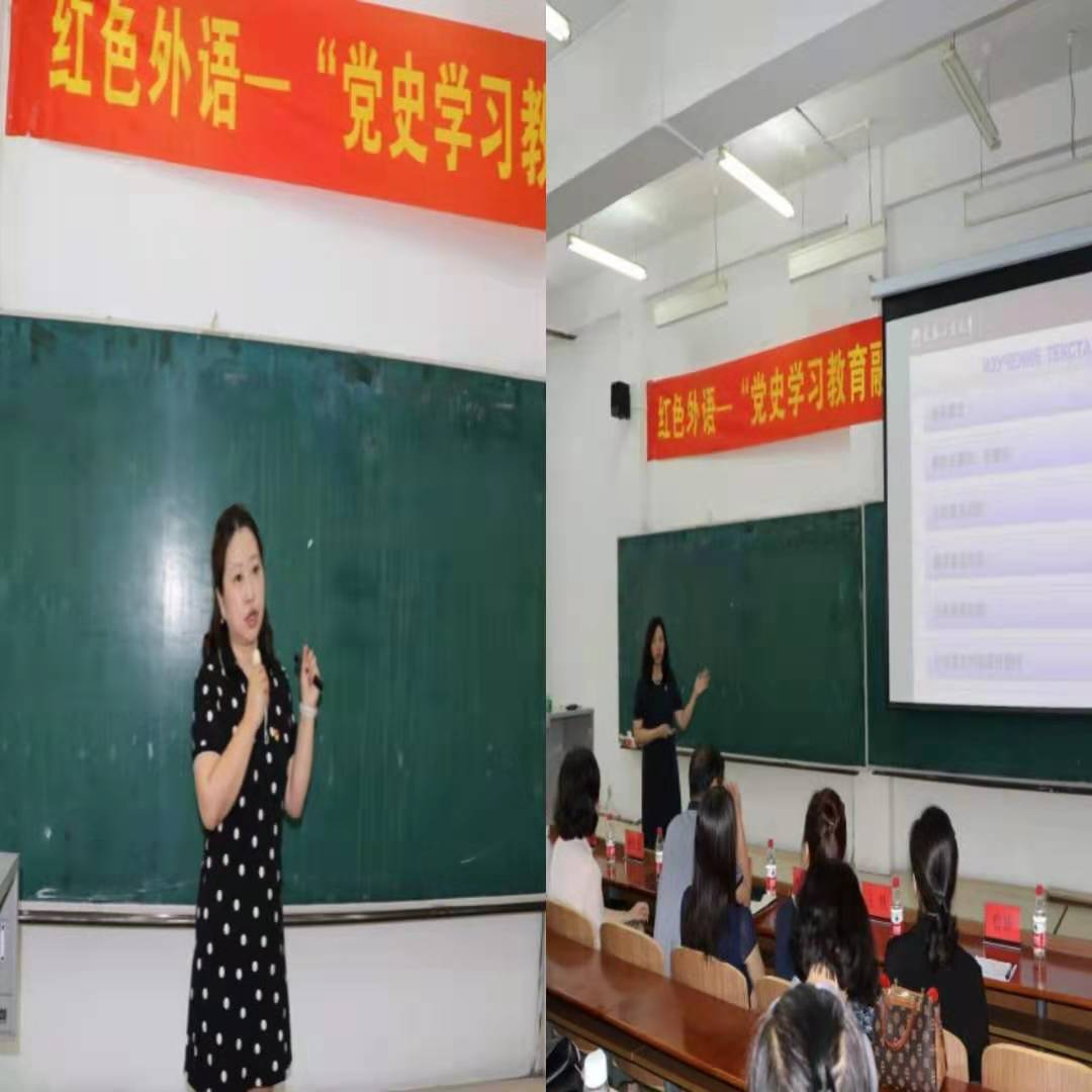 新闻网讯(通讯员 解瑶)为深入推进党史学习教育,贯彻落实《高等学校课程思政建设指导纲要》,深化“三全育人”,Beat365中文官方网站党委精心设计,于7月7日上午组织开展了红色外语—“党史学习教育融入外语课程教学”示范课观摩活动。学校教务处处长刘克平、教师教学发展中心主任常青、教学质量监控与评价中心副主任倪宏哲出席活动,学院班子成员、全体教师参加了本次活动。活动由副院长李秀文主持。