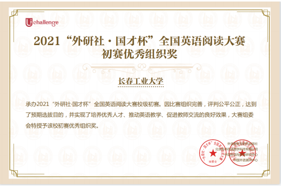 新闻网讯(通讯员 孙莉)“外研社·国才杯”全国英语阅读、写作大赛是由外语教学与研究出版社、教育部高等学校大学外语教学指导委员会、教育部高等学校英语专业教学指导分委员会、中国外语与教育研究中心联合主办的公益大赛,是外研社Unipus为全国大学生打造的展现风采、实现自我的赛事平台,也是为我国高等外语教育营造的凝聚创新、融通中外的交流媒介。