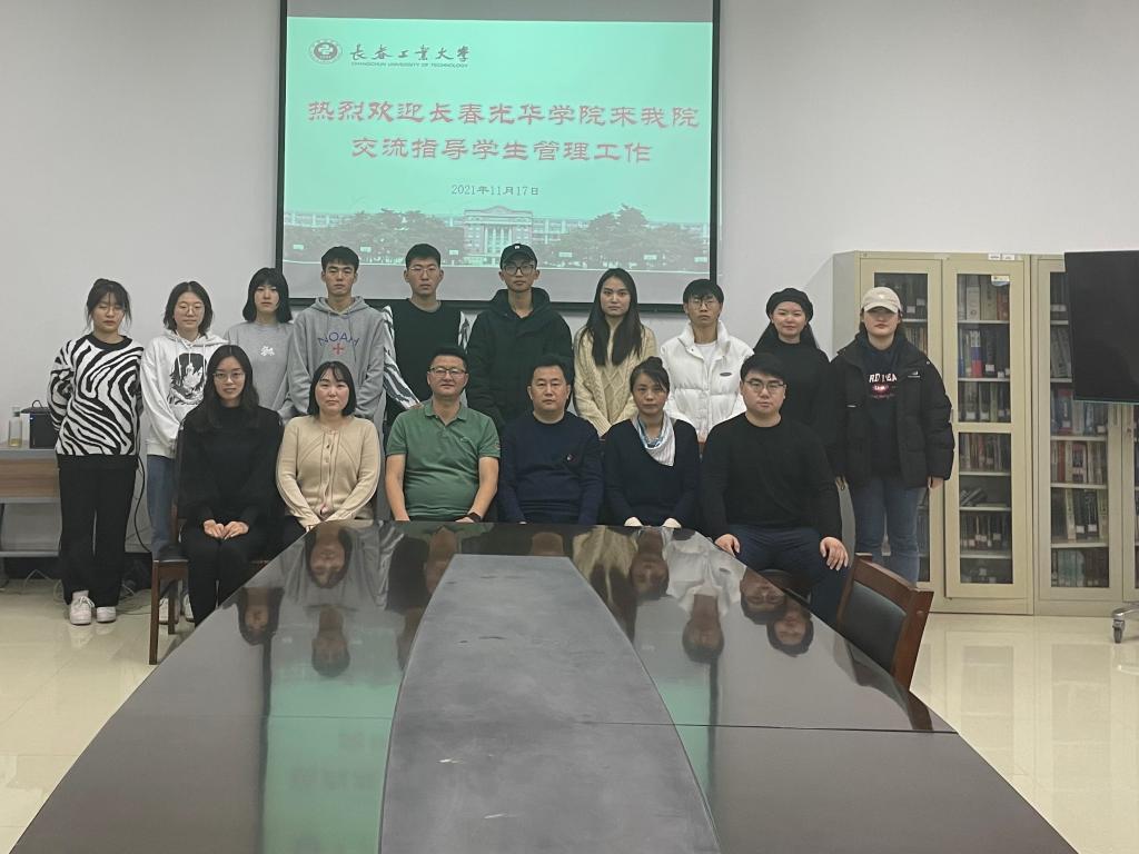 新闻网讯(通讯员 梁可伊)11月17日下午,长春光华学院现代教育学院党总支副书记兼副院长宫宴宾、团总支书记赵闯、学生党支部书记杨迦程、2018级辅导员刘晓晶以及部分学生干部代表等一行来我院进行交流学习。Beat365中文官方网站党委副书记于伟热情接待了来访客人,Beat365中文官方网站学生党支部书记刘明慧,学院辅导员助理、研究生会主席李姝焱以及部分学生干部代表参加此次交流会。
