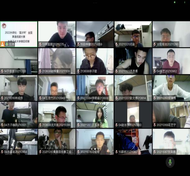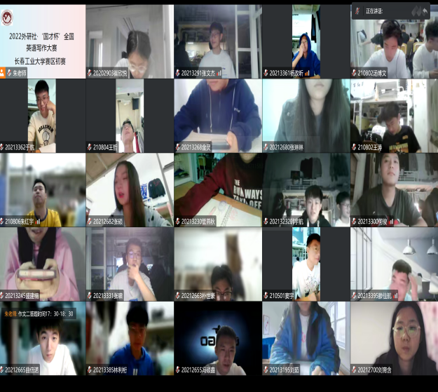 初赛采取线上考试的形式,为了保证比赛的顺利进行,9月31日学院召开会议布置考试相关工作,10月7日公共外语教学部第二教研室全体老师进行了考前培训,设置了腾讯会议号,批改网写作统一评分标准,雨课堂试卷发布等工作,同时要求参赛选手进行电脑环境测试,全程开启摄像头,为线上考试提供了前期保障。