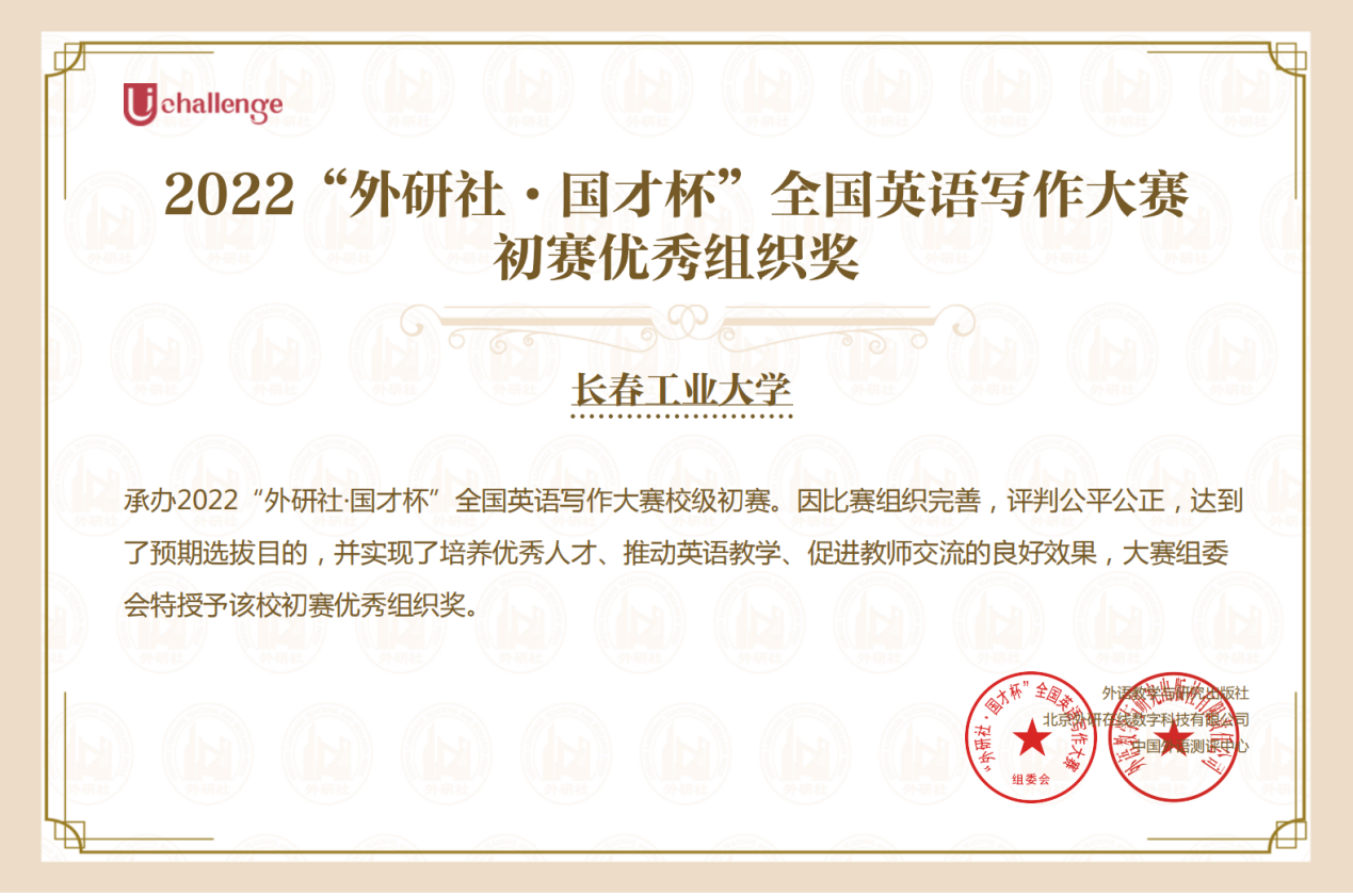 本次大赛的顺利举办获得了大赛组委会的充分肯定,授予我校为优秀组织奖。大赛充分发挥了“以赛促学、赛学相长”的作用,相信在此次比赛的带动下,同学们会在以后的学习中不断开阔视野,锤炼英语技能,为成为新时代复合型优秀人才而不懈努力。