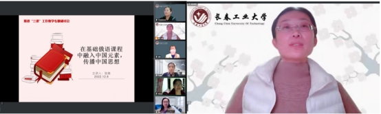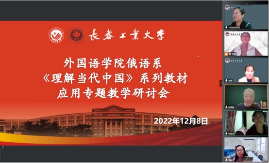 本网讯(通讯员 张微)为全面贯彻党的二十大精神和深入习近平总书记关于教育的重要论述,充分发挥外国语言优势,传播好中国声音,2022年12月8日,Beat365中文官方网站俄语系《理解当代中国》系列教材教学研讨会以线上会议方式举行。《理解当代中国》系列教材由外语教学与研究出版社出版,涵盖英语、俄语、日语等9个外语语种及国际中文,帮助学生了解中国特色话语体系,提高向国际社会讲好中国故事的能力。