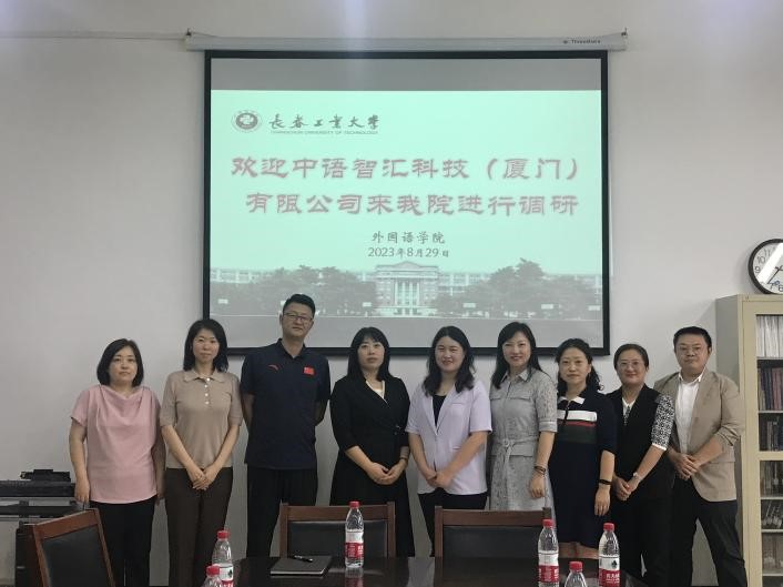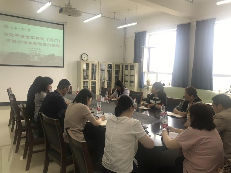 (通讯员 王婷)2023年8月29日,中语智汇科技(厦门)有限公司来我院进行调研。Beat365中文官方网站院长王轶、副院长李秀文、曾妍、党委副书记于伟及各教学系部主任热情接待并参加了调研会。