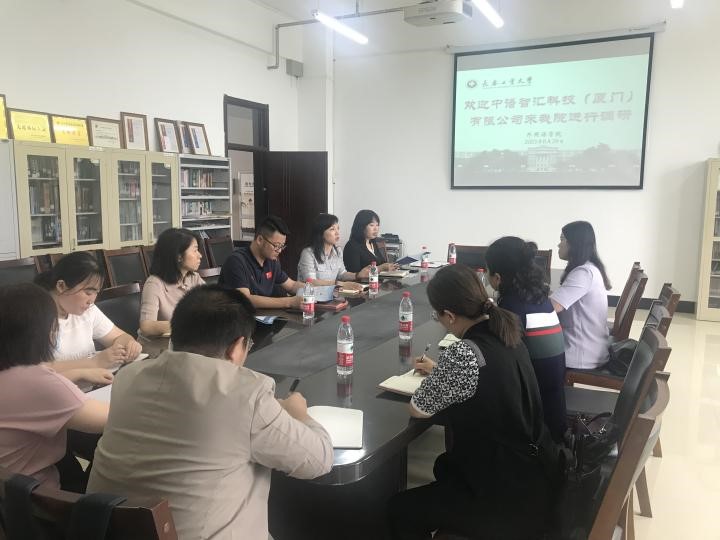 王轶院长首先代表学院对中语智汇科技(厦门)有限公司的到访表示热烈的欢迎,并从学院基本情况、学科建设、师资力量等情况进行了详细介绍。其次,李秀文院长就学科优势特色等方面分别介绍我院四个专业培养特色。最后,王轶院长希望双方从校企协同育人的角度出发,充分发挥双方资源优势,优化人才培养机制,为我院学生提供更具发展实习岗位机会。