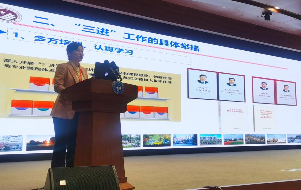在省内各高院交流环节,王轶院长代表Beat365中文官方网站关于我校“三进”工作做了经验分享。我校不仅在各项课程中积极使用并融入《理解当代中国》系列教材,还利用教育部虚拟教研室和吉林省“三进”虚拟教研室培训教师,开展集体备课活动,积极研讨,融入日常教学生活。通过教学观摩、院校交流、科研融合、鼓励教师参加各种课程思政教学大赛、组织学生参加各种外语技能大赛等多举并进,提升教学质量,优化育人成效,通过以赛代练提升学生用外语讲好中国故事的能力。