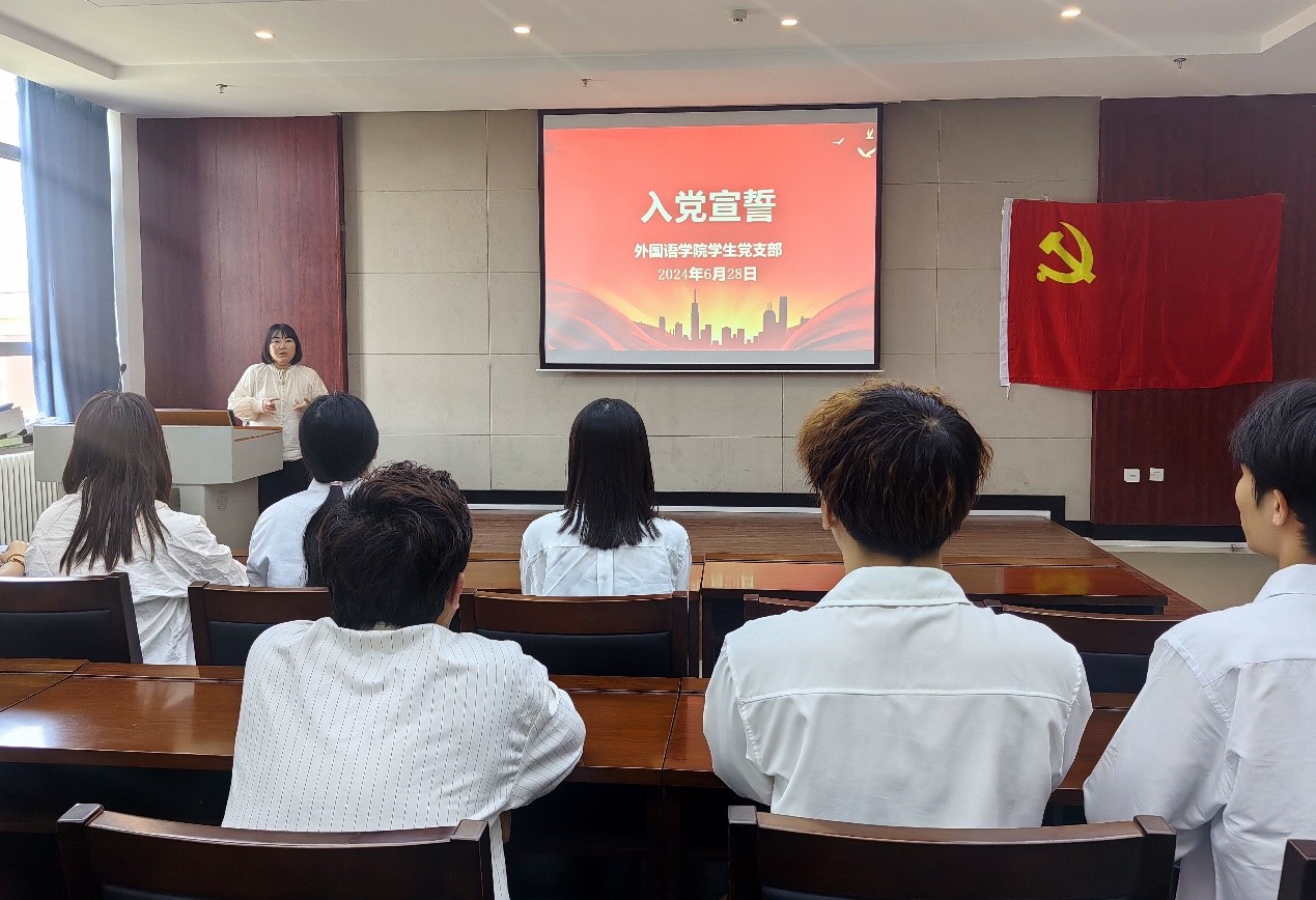 本网讯(通讯员 吴云坤)为庆祝中国共产党成立103周年,弘扬伟大建党精神,深入贯彻落实习近平新时代中国特色社会主义思想和党的二十大精神,进一步巩固和拓展主题教育成果,扎实开展党纪学习教育,Beat365中文官方网站党委于6月28日组织新党员入党宣誓、老党员重温入党誓词主题党日活动。活动由学院学生党支部书记刘明慧主持,学生党支部党员参加了宣誓活动。