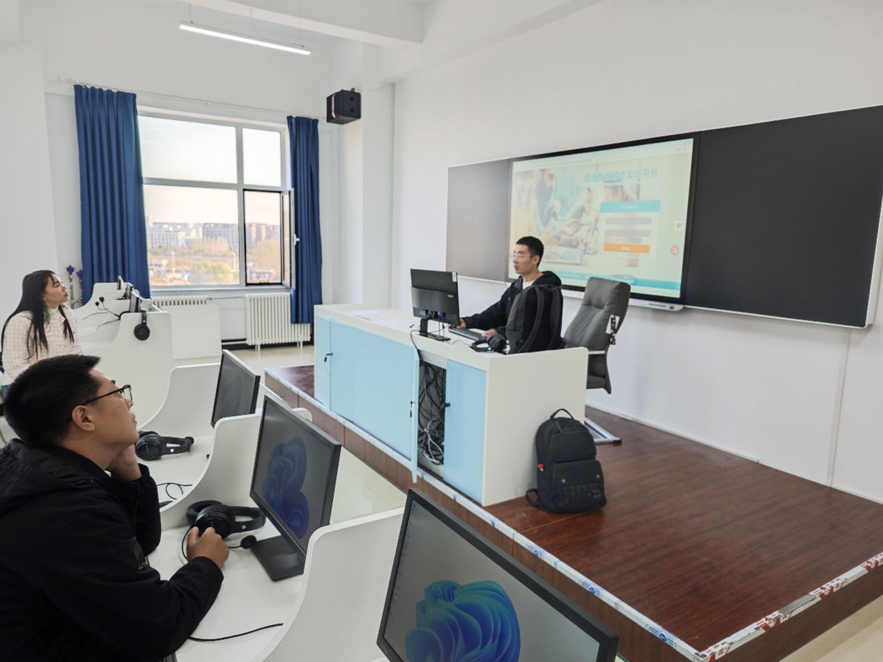 然后,辽宁一课科技有限公司讲师金钊为我院教师讲解了“OneClass外语教学系统”的使用方法,以及该系统如何辅助教师进行外语听力、同声传译、交替传译等课程教学。
