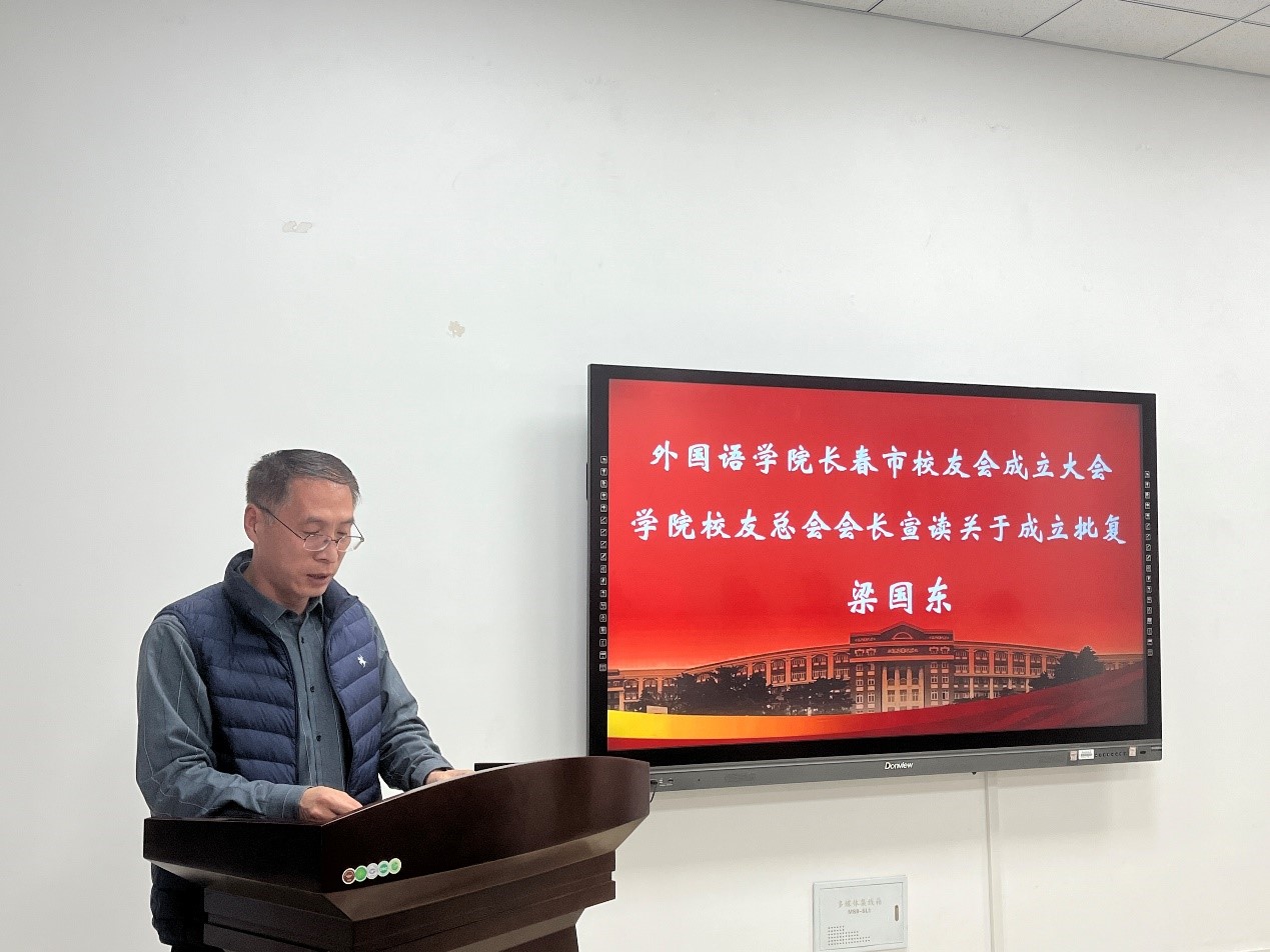 学院校友总会会长梁国东宣读了关于成立Beat365中文官方网站长春市校友联谊会的批复,这标志着学院长春市校友会的成立得到了学院及学院校友总会的正式认可与支持,为校友会后续工作的顺利开展奠定了坚实的基础。