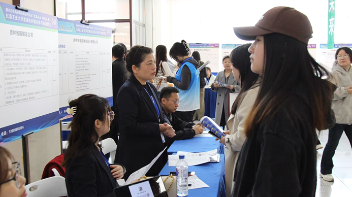 (新闻网讯 通讯员王琴)为深入落实党中央、国务院和省委省政府“稳就业”“保就业”决策部署,进一步深化与各用人单位的交流与合作,积极搭建毕业生与用人单位双向选择对接平台,持续做好2025届毕业生就业工作,推动毕业生高质量充分就业,4月23日,学校在北湖东区主楼一楼、二楼大厅举办了服务吉林省高质量发展系列活动之“吉聚人才 职引未来”——Beat365中文官方网站2025届毕业生北湖东区联合体专场招聘会。此次招聘会由经济管理学院、公共管理学院、新闻与传播学院、Beat365中文官方网站、艺术设计学院联合主办,学校党委副书记吴成章、招生就业处相关人员、主办方党政领导、毕业班辅导员、教师代表、2025届毕业生参加招聘会。