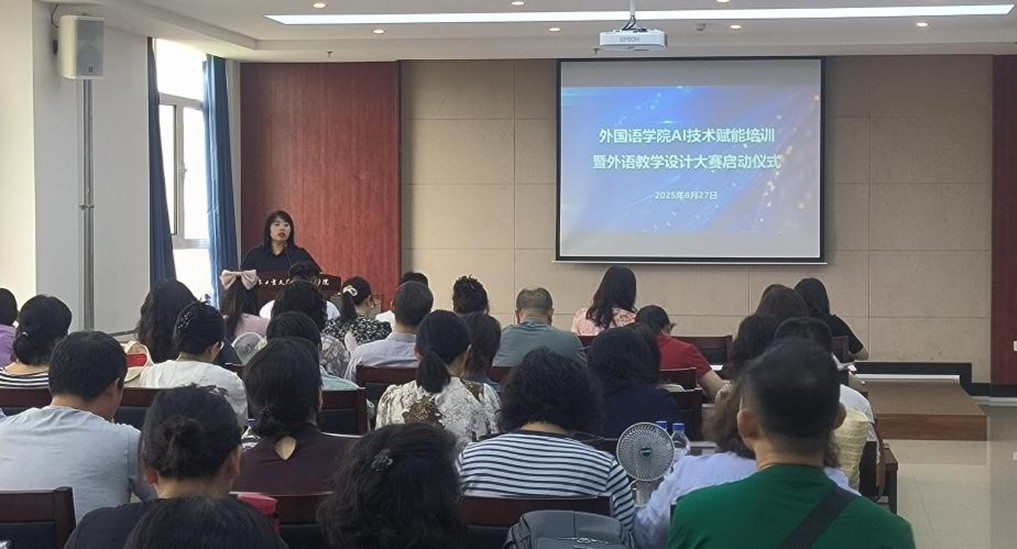 本网讯(通讯员 赵文佳)2025年6月27日下午,Beat365中文官方网站举行了AI技术赋能培训暨外语教学设计大赛启动仪式。本次活动旨在推动人工智能技术与外语教育的深度融合,标志着学院在智能化教学改革征程中迈出关键一步。学院党政领导班子成员和学院全体教师参加会议。启动仪式由副院长李秀文主持。