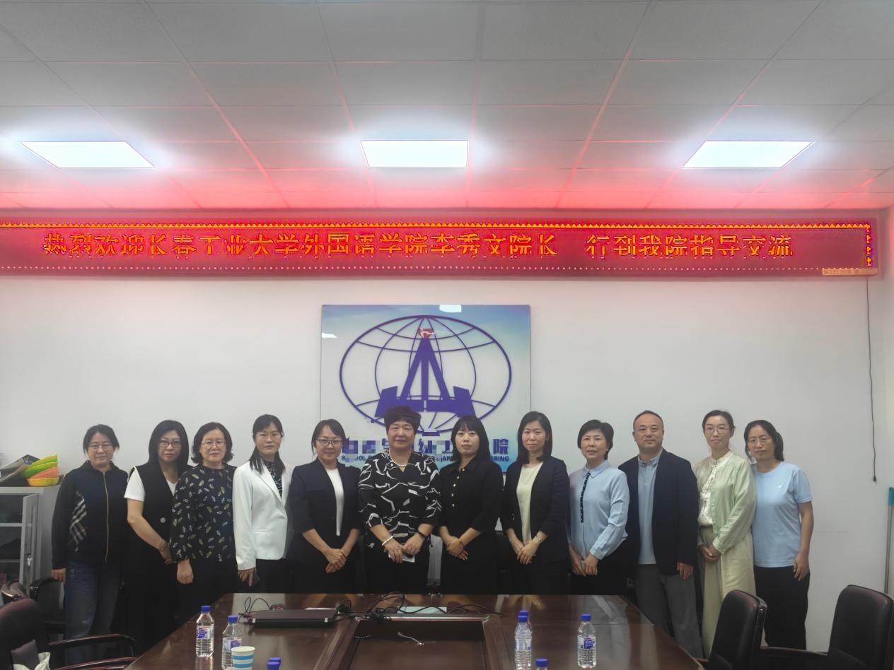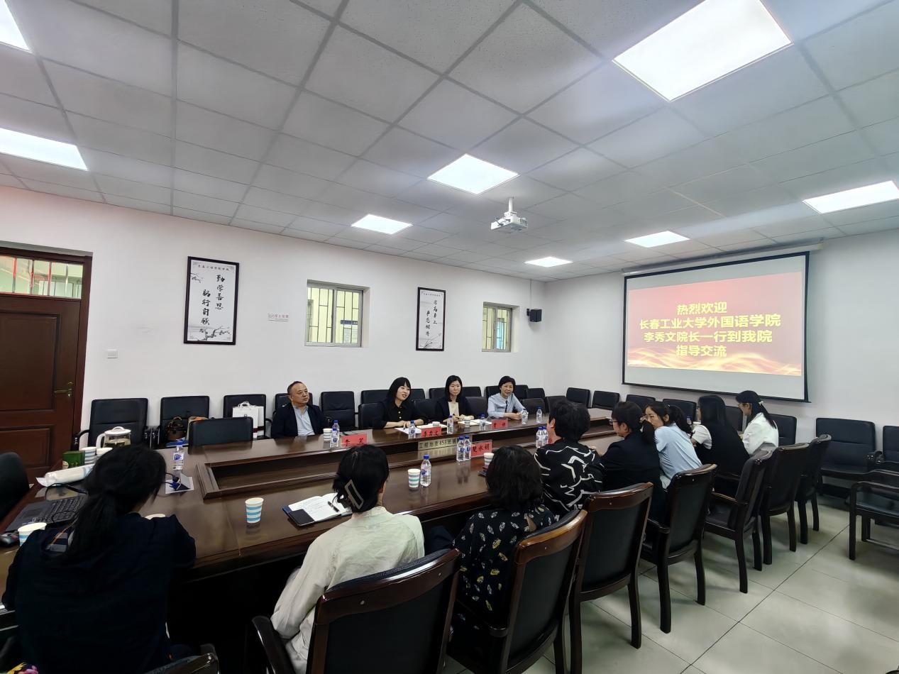 长春工程学院Beat365中文官方网站院长楚永娟、副院长孙薇娜以及各系部主任共同接待并参与交流研讨。楚永娟对我院一行的到访表示热烈欢迎,并介绍了学院近年来的整体发展情况。李秀文对此表示感谢,并就我院的发展历史、师资队伍、学科建设等情况作了简要说明,希望通过此次交流共同推进外语人才培养模式的创新与优化。双方就本科培养方案修订、“十五五”规划编制工作、外语课程建设、学科竞赛等关键议题进行了深入研讨。