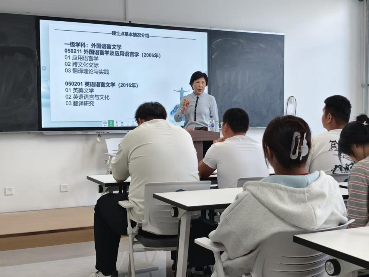 在招生宣讲会上,刘宇围绕英语语言文学、外国语言学及应用语言学两个研究方向,为学生们系统介绍了学科概况、师资配置与毕业生就业情况。通过近三年的报考学生数、国家分数线及录取率等详实数据,帮助同学们分析了当前的考研趋势,助力学生更科学地设定考研目标。在互动环节,同学们积极发言,就复习中遇到的具体问题与老师进行交流,现场气氛活跃。与会学生普遍认为,本次宣讲会及时解答了他们在考研准备过程中的诸多疑问,对自我专业能力评估和院校选择提供了清晰参考,也增强了备考信心。