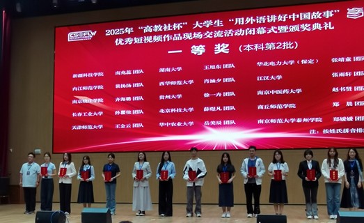 本网讯(通讯员 汪沛)9月21日,2025年“高教社杯”大学生“用外语讲好中国故事”优秀短视频作品征集活动在江汉大学落下帷幕。我院教师汪沛、刘宇指导的学生作品《峥嵘岁月 青春无悔》经过层层选拔,最终斩获国赛一等奖。