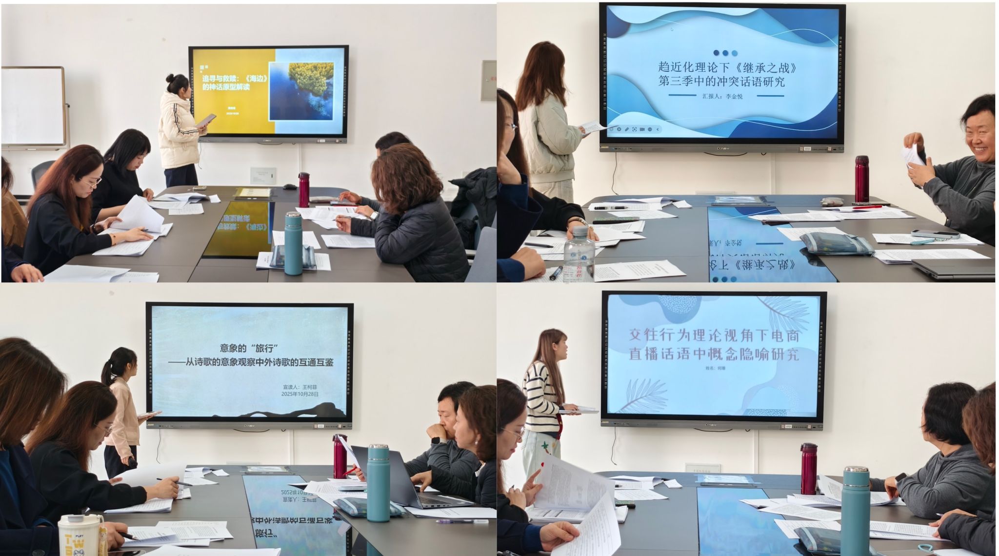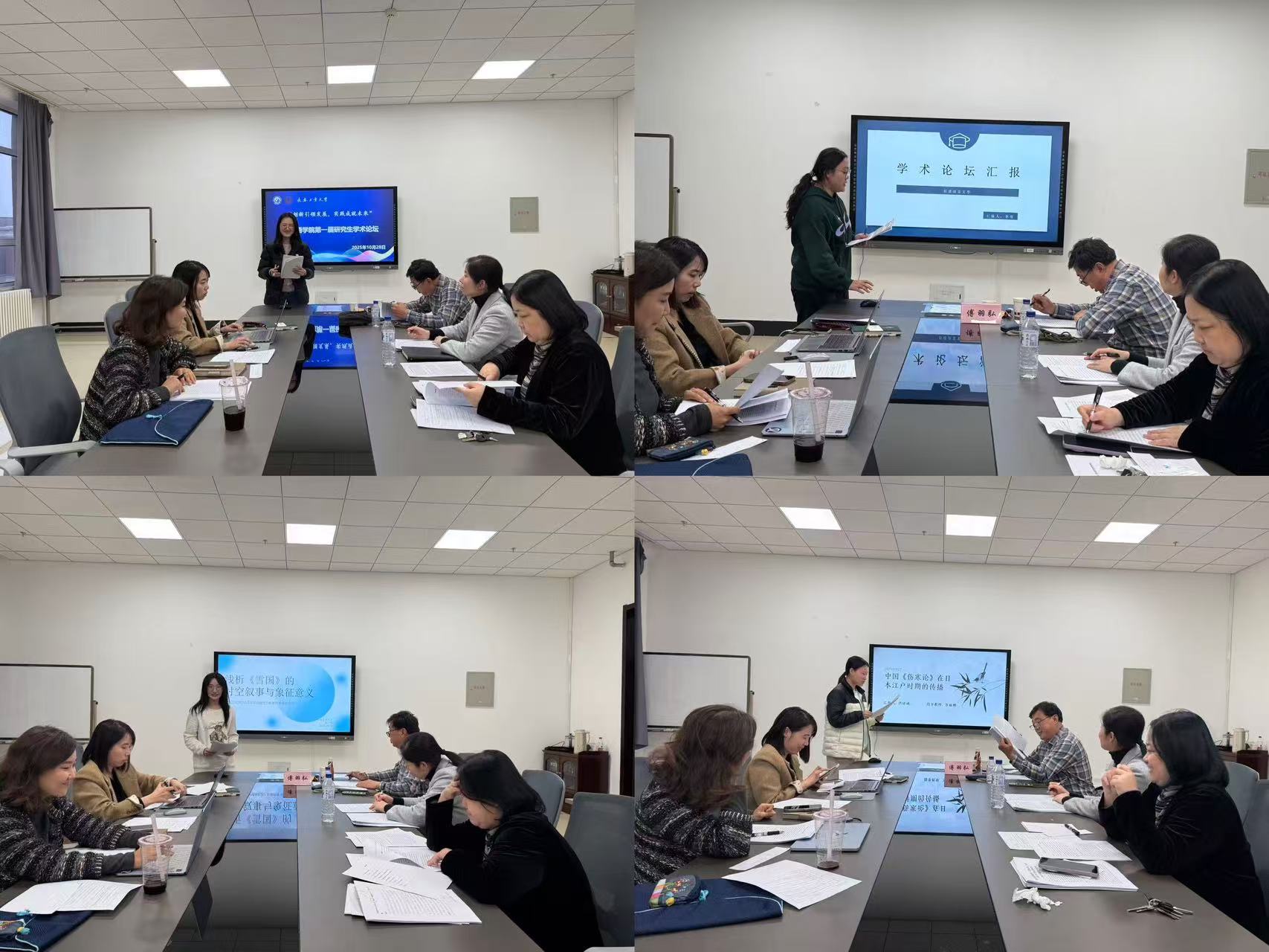 第三分论坛:日语语言文学组(2024级研究生)的专家评委针对同学们论文的研究框架、文献梳理、论证逻辑等方面进行细致指导,既肯定了同学们在研究中的创新点,也指出了部分论文在理论应用深度、研究方法规范性上存在的不足,并结合具体案例给出了切实可行的修改建议,帮助提升学术科研能力。