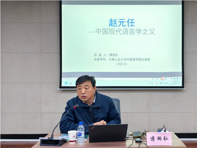 10月19日下午,学院特邀吉林大学傅羽弘教授为师生作学术报告,题为“赵元任——中国现代语言学之父”,报告通过深入解读赵元任先生的卓越学术生涯,深刻阐释了其学术思想对于当代语言学发展、文化传承与学术研究的深远意义。学院全体研究生和部分青年教师聆听了报告会。