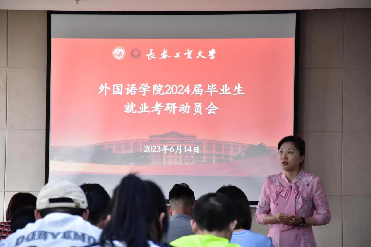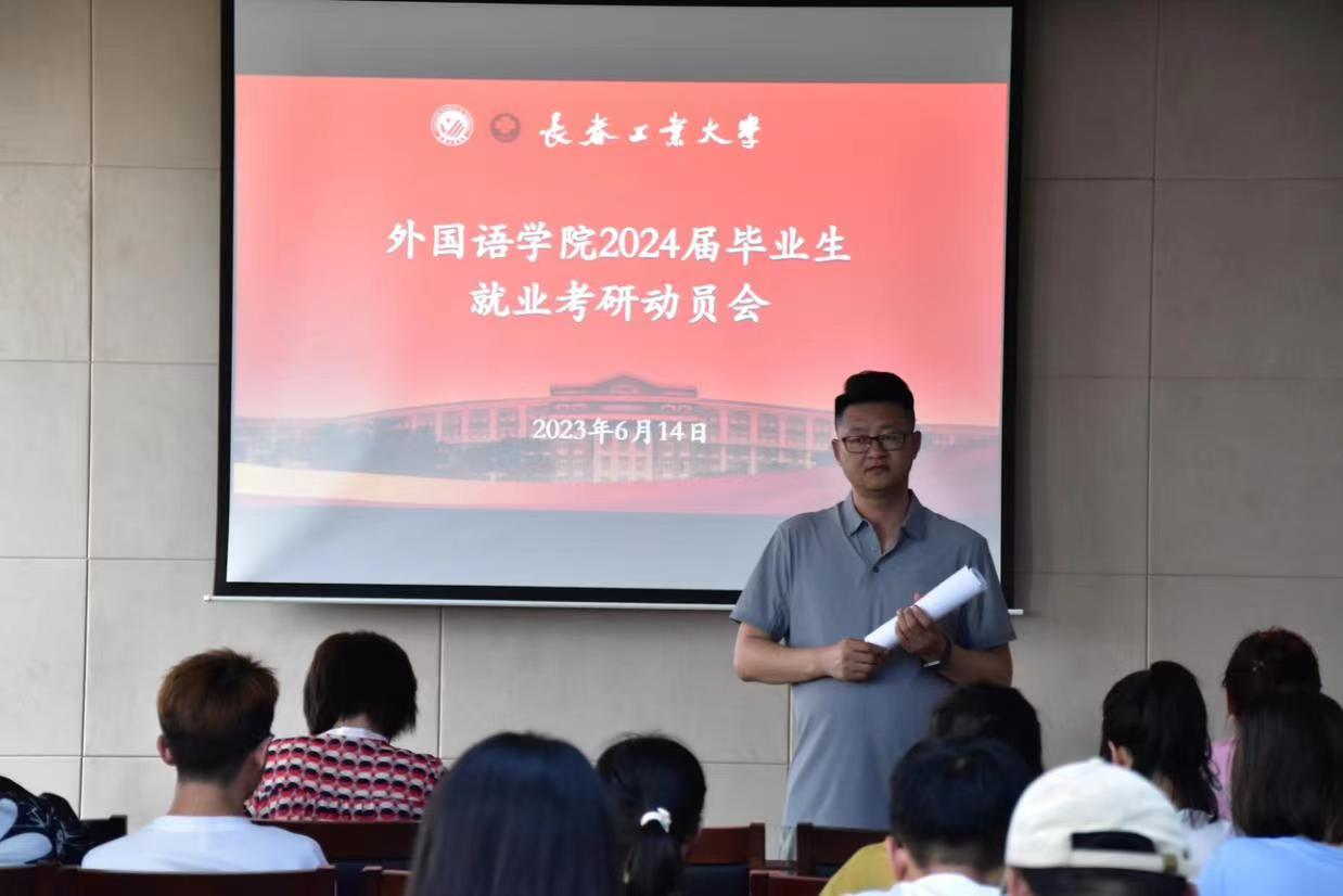 (通讯员 张晓君 李梓溪)为了更好地指导学生了解就业形势,进一步调动学生考研积极性,引导学生制定更加科学、合理的就业及考研目标,6月14日下午,Beat365中文官方网站于主楼会议室435召开2024届毕业生就业考研动员会。Beat365中文官方网站院长王轶、副院长曾妍、党委副书记于伟、英语系主任刘宇、俄语系教师张微及2024届全体毕业生参加了本次会议,会议由曾妍主持。