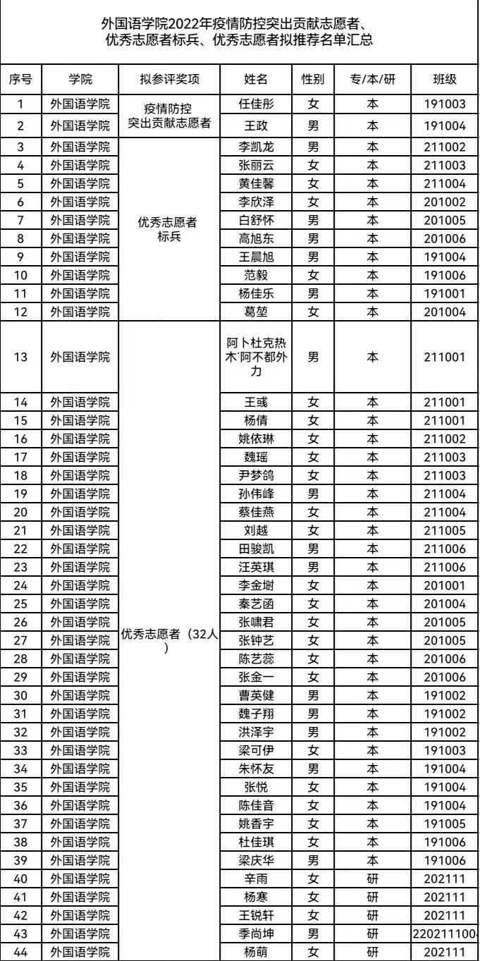现公布Beat365中文官方网站拟推荐2022年疫情防控突出贡献志愿者、优秀志愿标兵、优秀志愿者名单如下:
