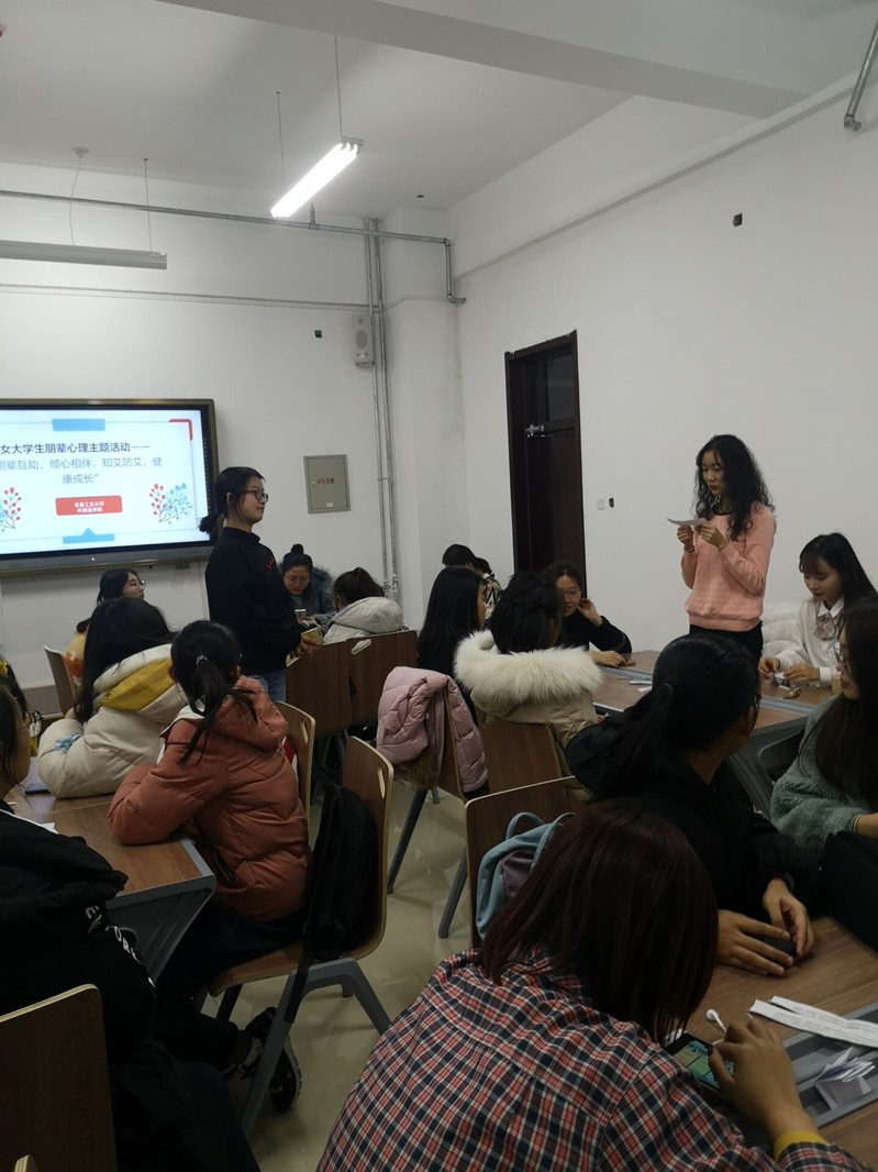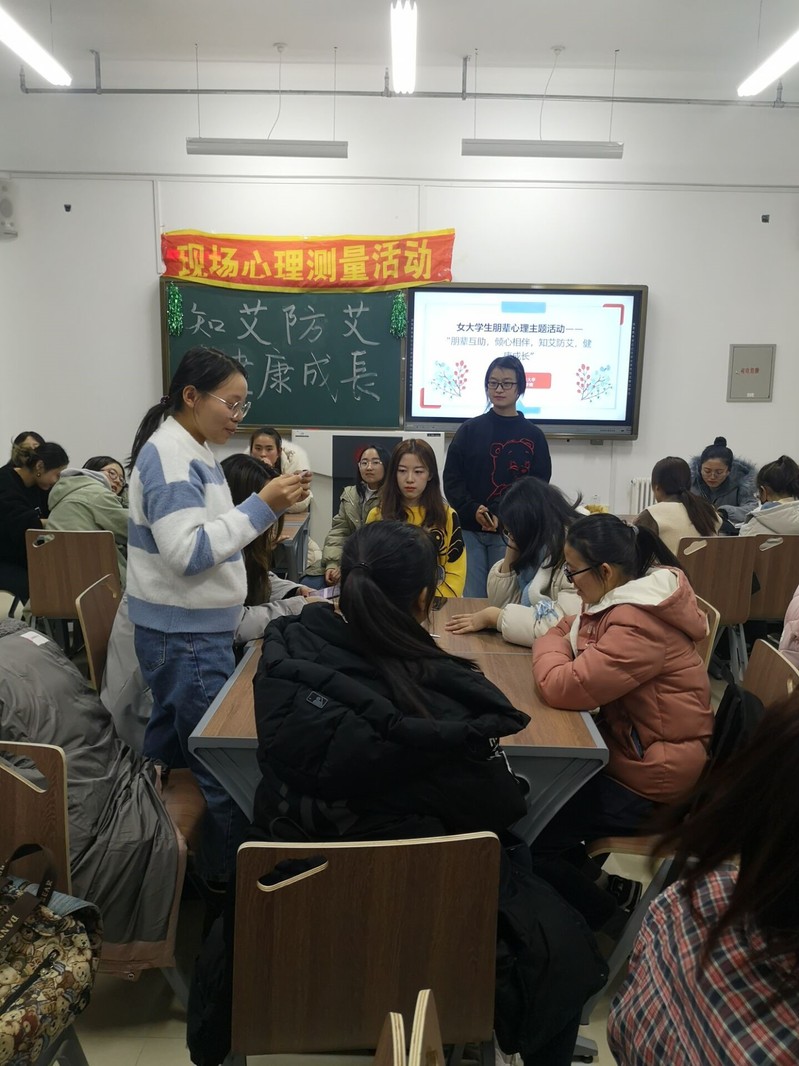 (通讯员:蒋文洋,孙润昊)2019年12月4日16:00至17:36,为了帮助女大学生更好地融入大学校园,切实解决在生活、学习中的各种问题,收获健康阳光的心理状态,同时响应12月1日世界艾滋病日的号召,更好地在大学生中宣传艾滋病知识与理念,Beat365中文官方网站Beat365中文官方网站朋辈心理辅导站特在北湖东区主楼374、366室展开“朋辈互助,倾心相伴,知艾防艾,健康成长”主题女大学生朋辈心理辅导活动。该活动由赵君、王颖群、刘明慧老师指导,孙润昊等同学负责组织,18级19级女大学生同学积极参加。