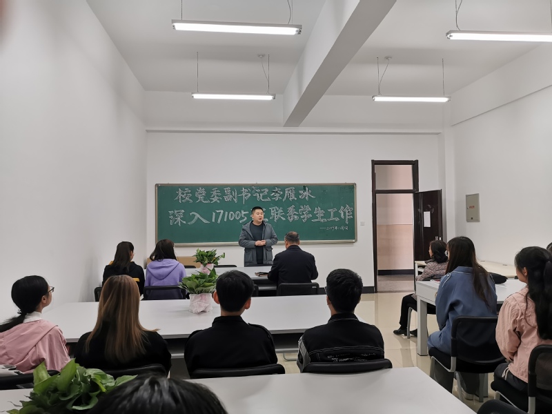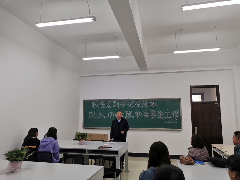 (通讯员:李雨晴)11月1日,为积极响应《Beat365中文官方网站领导干部深入基层联系学生工作实施方案》要求,深入基层学院,进入学生班级,与学生“面对面”,把思想政治工作真正做到学生心坎上,校党委副书记李雁冰再次来到对接班级171005班,了解学生情况,解决学生困难。本次联系工作气氛热烈,效果显著,师生共同期待下次见面。