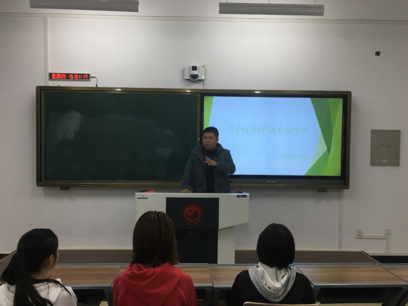 (通讯员:李雨晴)为落实团中央“共青团服务大学生就业工作片区会”精神,全面推进吉林共青团投身打赢脱贫攻坚战三年行动,呼吁面向建档立卡困难学生提供岗位对接,实现服务就业的主题,团委书记赵海涛老师为对Beat365中文官方网站建档立卡的贫困同学给予关怀和帮助,在11月7日下午2点半于教学主楼433教室召开了“千校万岗”就业指导会。