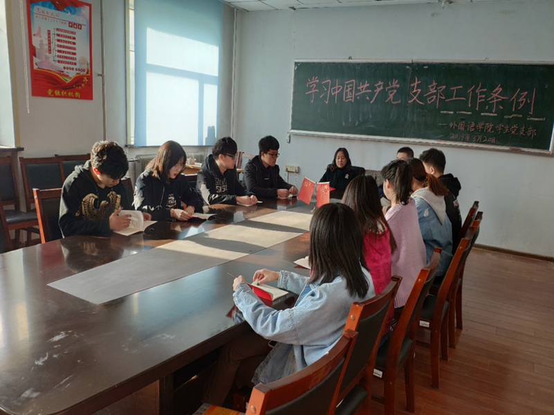 (通讯员:鲍越崎)3月20日下午3点40,Beat365中文官方网站党委副书记王颖群、学生党支部书记赵海涛领导学生党支部成员在外语楼会议室召开了支部党员大会,组织学习《中国共产党支部工作条例》。