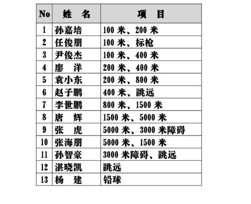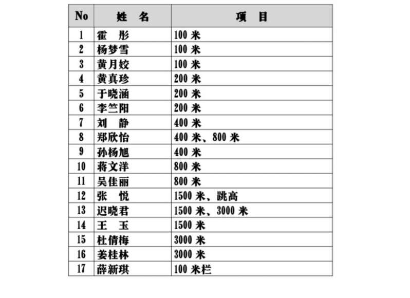 Beat365中文官方网站第四十届田径运动会参赛人员名单