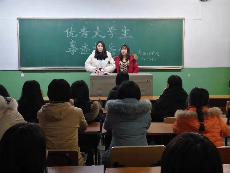 新闻网讯(通讯员 鲍越崎)12月2日晚上7点半,Beat365中文官方网站161003班于主楼711教室召开了优秀大学生事迹报告会,优秀大学生代表研究生于鑫、研究生郑佳薇以及161003班全体同学参加了此次报告会。