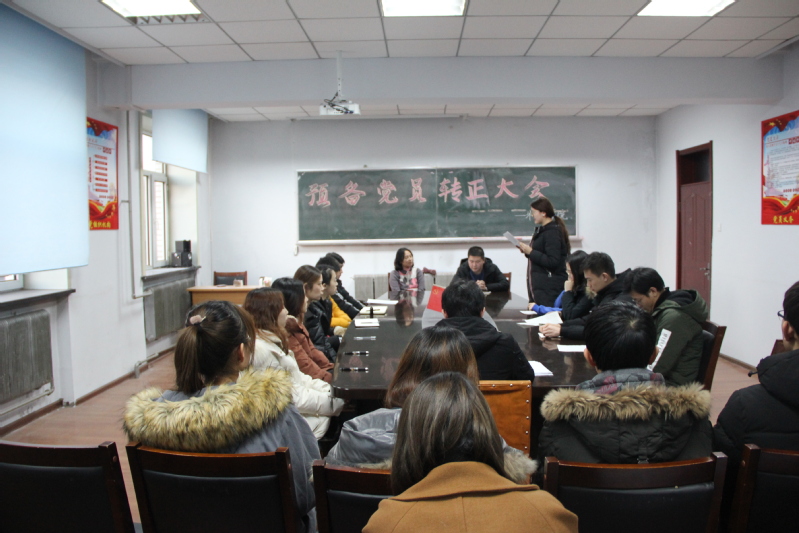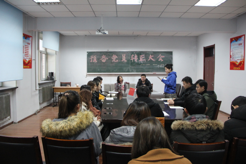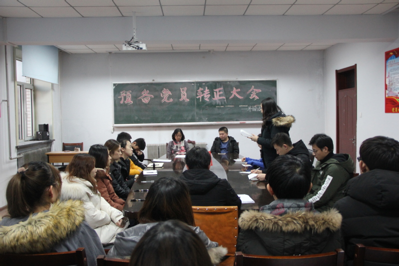 (通讯员:高鹤)12月20日下午3点, Beat365中文官方网站党委副书记王颖群、团委书记赵海涛领导组织并在外语楼召开了预备党员转正大会。