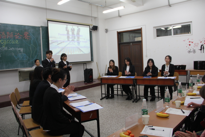 赛中,16级选手就各自辩题展开激烈讨论。双方辩手你来我往,唇枪舌战,现场掌声不断,气氛热烈。选手们挺拔的身姿、出色的口才、精辟的措辞、敏捷的思维无一不让令场下观众赞叹不已。流畅的双语表述,展示着工大俄语人的优秀水准。